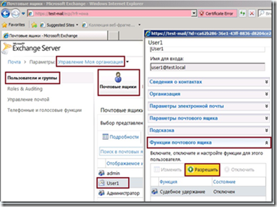 В OWA выдает ошибки - при попытке использования почтового ящика произошла ошибка.